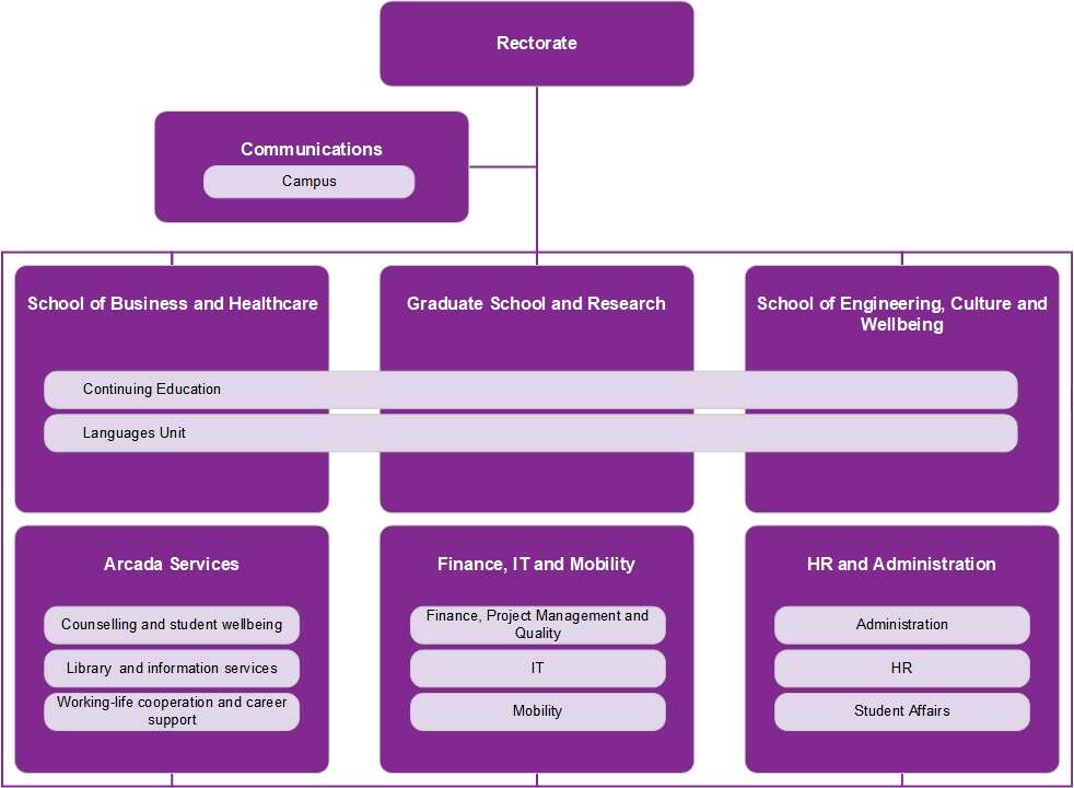 This is the structure of Arcada's organisation: