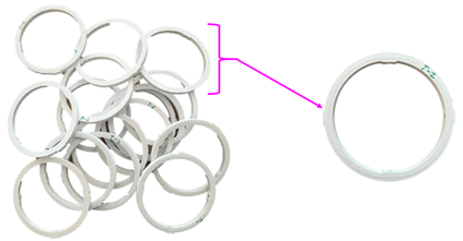 The DoE should have two test replicates; hence we produced two samples for each experimental run. Fig. 4 shows the 3D printed mounting rings.