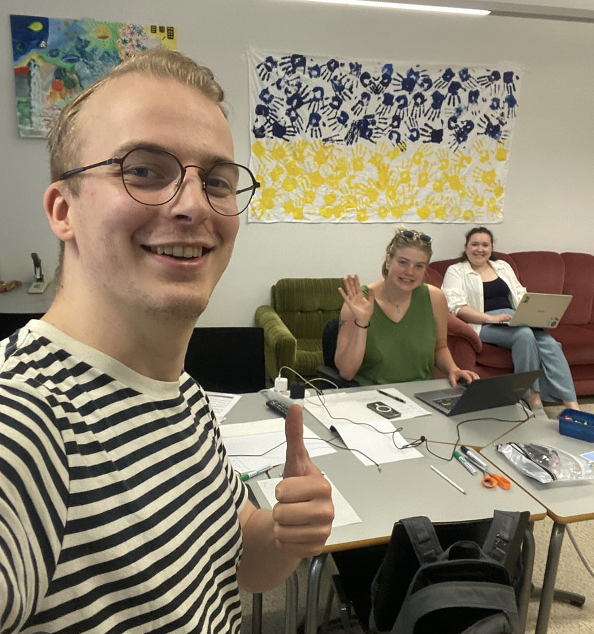 Den 18 maj gick startskottet: under Stafetten till Ukraina ror, vandrar och springer en grupp finländare hela vägen från Helsingfors till Ukraina med målet att samla in 156 100 euro. Men även på hemmaplan är det full aktivitet. I Arcadahuset finns stafettens redaktion, där ett team med frivilliga studenter producerar dagliga innehållsuppdateringar för sociala medier.