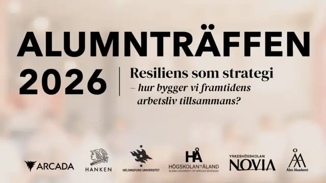 Arcada, tillsammans med Hanken, Helsingfors universitet, Högskolan på Åland, Novia och Åbo Akademi bjuder in alumner och vänner till den årliga gemensamma virtuella alumnträffen onsdagen den 25.3.2026 kl. 15.00–16.30.